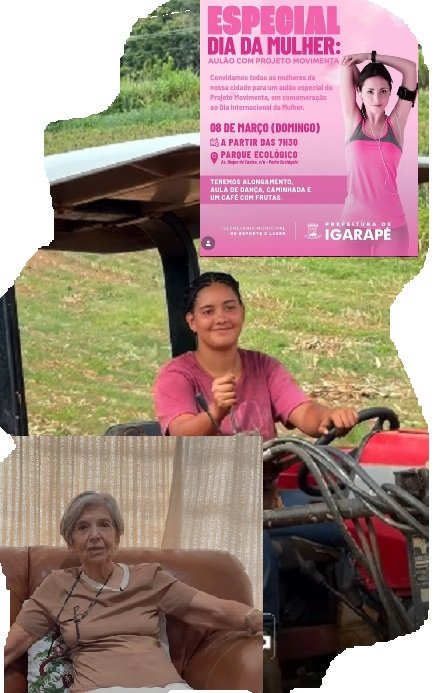 📸 No destaque da nossa fotomontagem: ⭐ Dona Zélia é homenageada por sua trajetória e relevantes serviços prestados à Educação, em Pedro Leopoldo; 👩🌾 a força do campo representada pela produtora Ana Júlia, na lida com a silagem de milho, em Itaúna; e em 👟 Igarapé, o projeto Movimenta celebra o Dia Internacional da Mulher com um aulão especial.