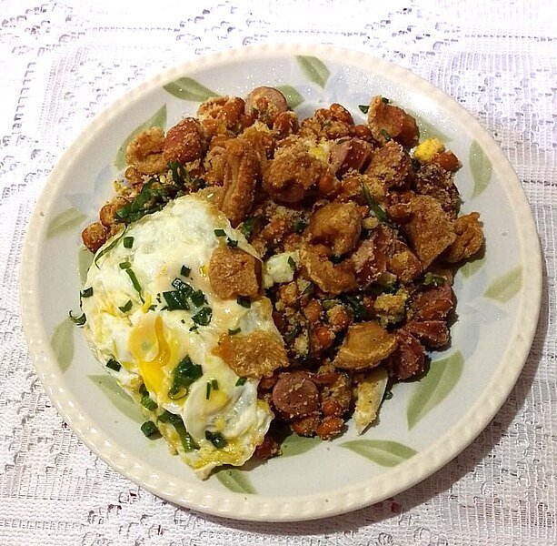 Complemento pela Editoria do portal: a receita acima foi sugerida por dona Iaiá. Mas, o coletivo da editoria tem algo a acrescentar. Um bom tropeiro pode ser enriquecido com dois itens: uma boa fatia de pernil assado e um ovo frito, ambos colocados por cima do tropeiro. Embora muitos utilizem a Maria Rosa, tradicionalmente, a linguiça caseira – desde que previamente cozida -, pode ser utilizada, assim como a linguiça calabresa, que já é pré-cozida/defumada. O importante é que tudo seja da melhor qualidade, pois, a melhor forma de conquistar um cliente é caprichar no preparo, sem economizar na escolha dos ingredientes – ainda que se cobre um pouco mais. Acrescente um arroz branco, feito no mesmo dia, devidamente cozido – esporadicamente, temos encontrado arroz cru em algumas cozinhas da região, o que não é bom! – e pronto. É só servir e saborear mais essa delícia da iguaria mineira, ao lado de outros pratos, como o frango com quiado e angu, o tutu de feijão, o leitão à pururuca, a vaca atolada, além, é claro, do pão de queijo, da broa de fubá, do queijo, do doce de leite e do saboroso cafezinho mineiro. Hummmm. Deu até água na boca! Já está na hora do almoço, hein? Pode servir, uai!